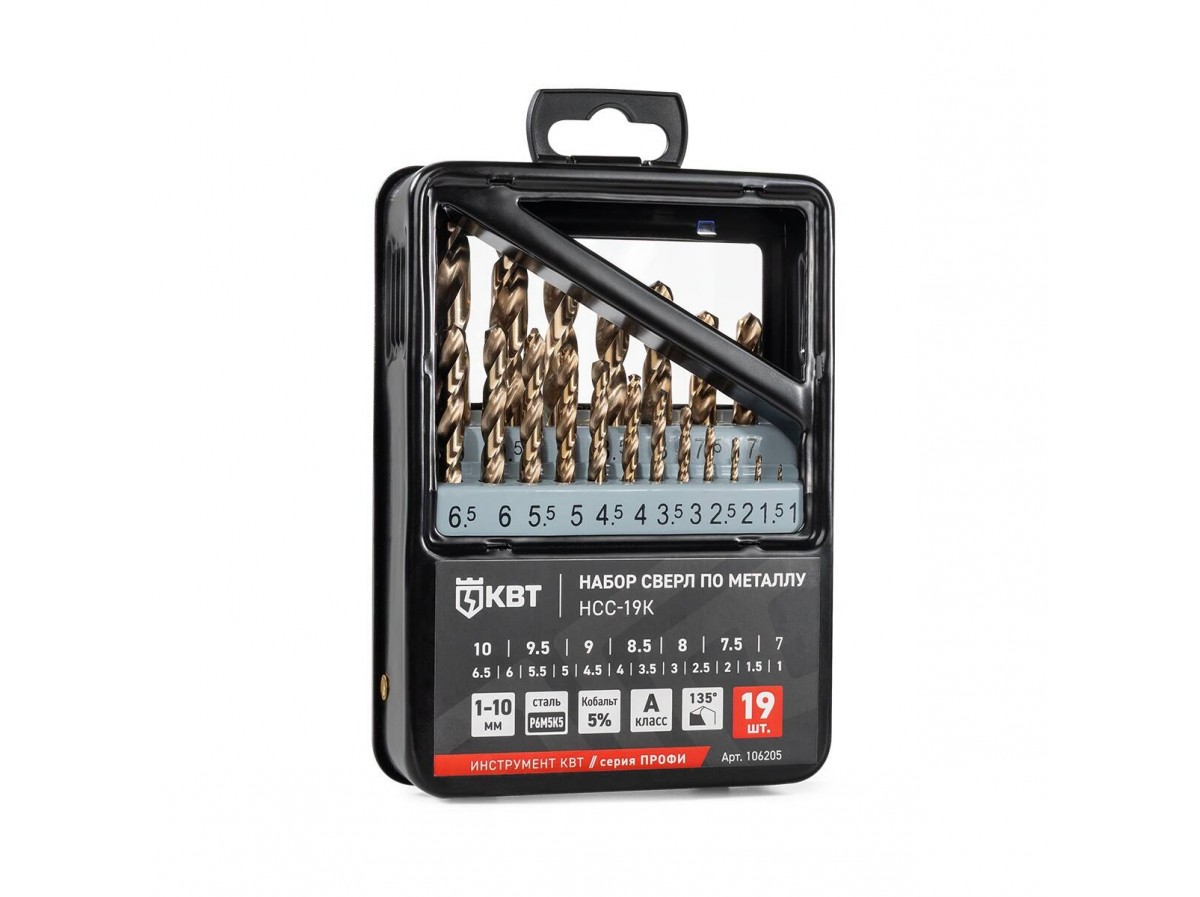 Набор сверл по металлу НСС-19К серия ПРОФИ 19 шт., сталь М35 (Р6М5К5) Кобальт, 1-10 мм купить по выгодной цене (0.00 руб.) в интернет-магазине КВТ-PRO.RU - фото, отзывы, технические характеристики. Доставка по Москве и России